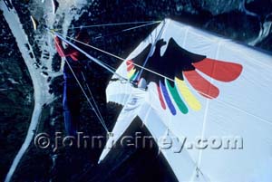 Own some (or all) of these limited edition prints of twelve of John's best classic images. These were centerspreads in the early days of Hang Gliding Magazine. They are 11 X 17 inches and will be delivered rolled in a cardboard tube. Prints will be mailed on the business day after the order is recieved. $12.00 for three prints (additional prints at $5.00 each). Please add $5.00 per order for standard shipping within the USA. Available while supply lasts. Choose from the thumbnails below, and E-mail your selection to: hangglidingphotos@hotmail.com or call 760-822-5667 to place your order.